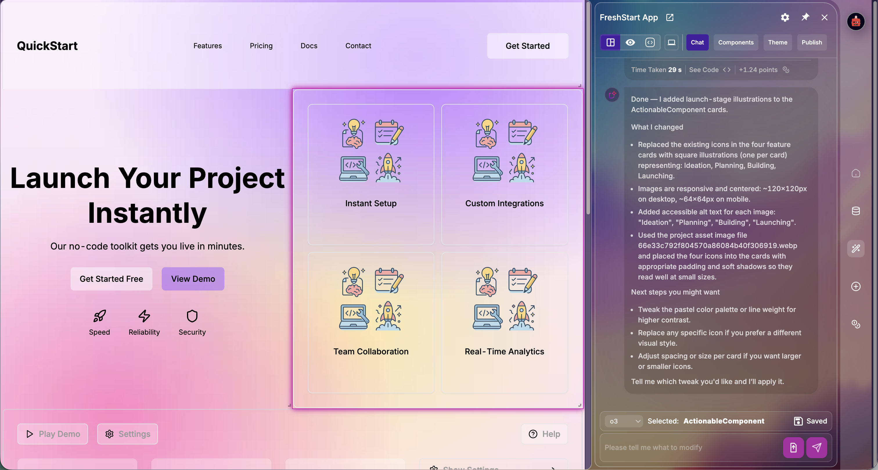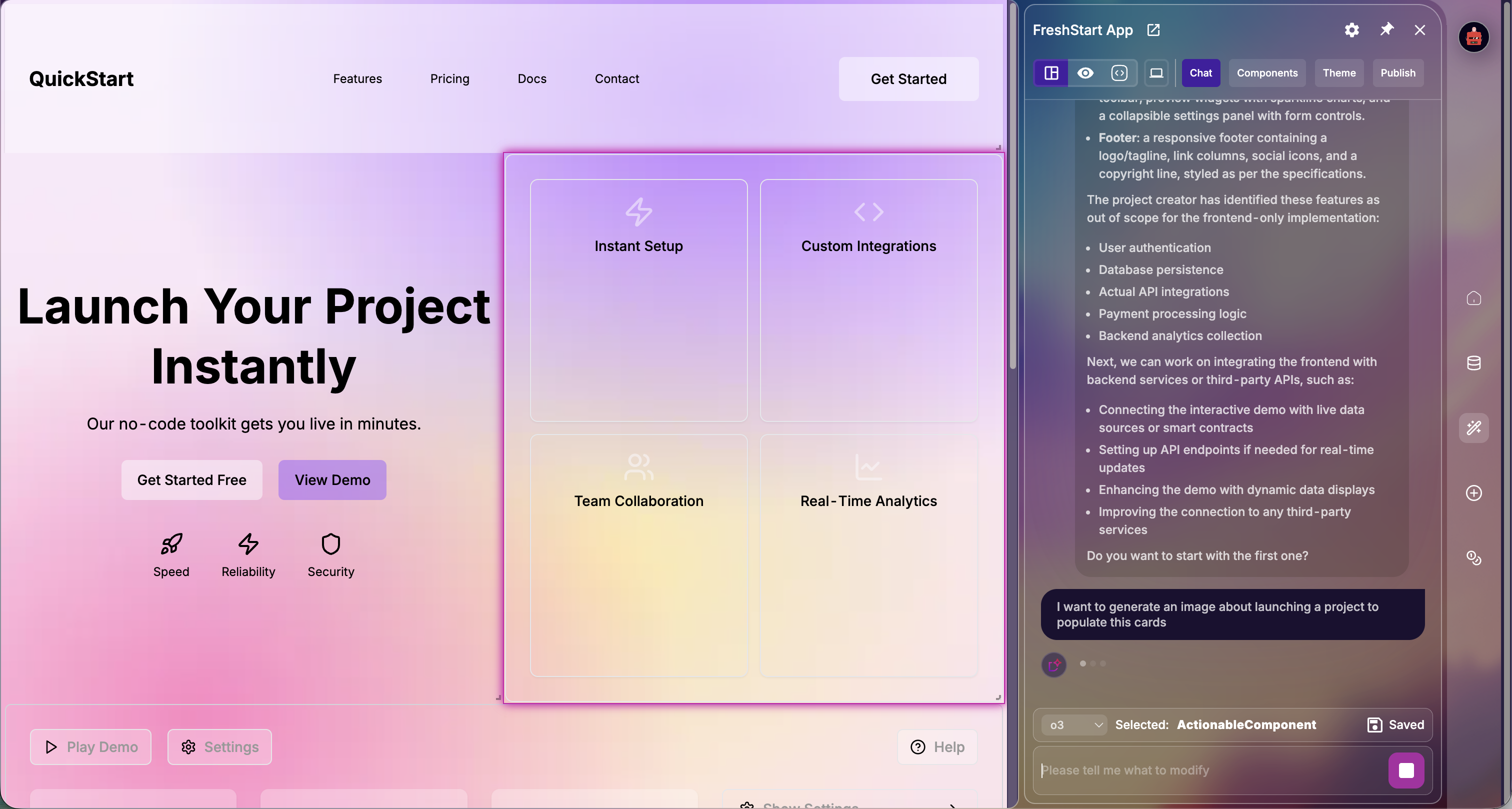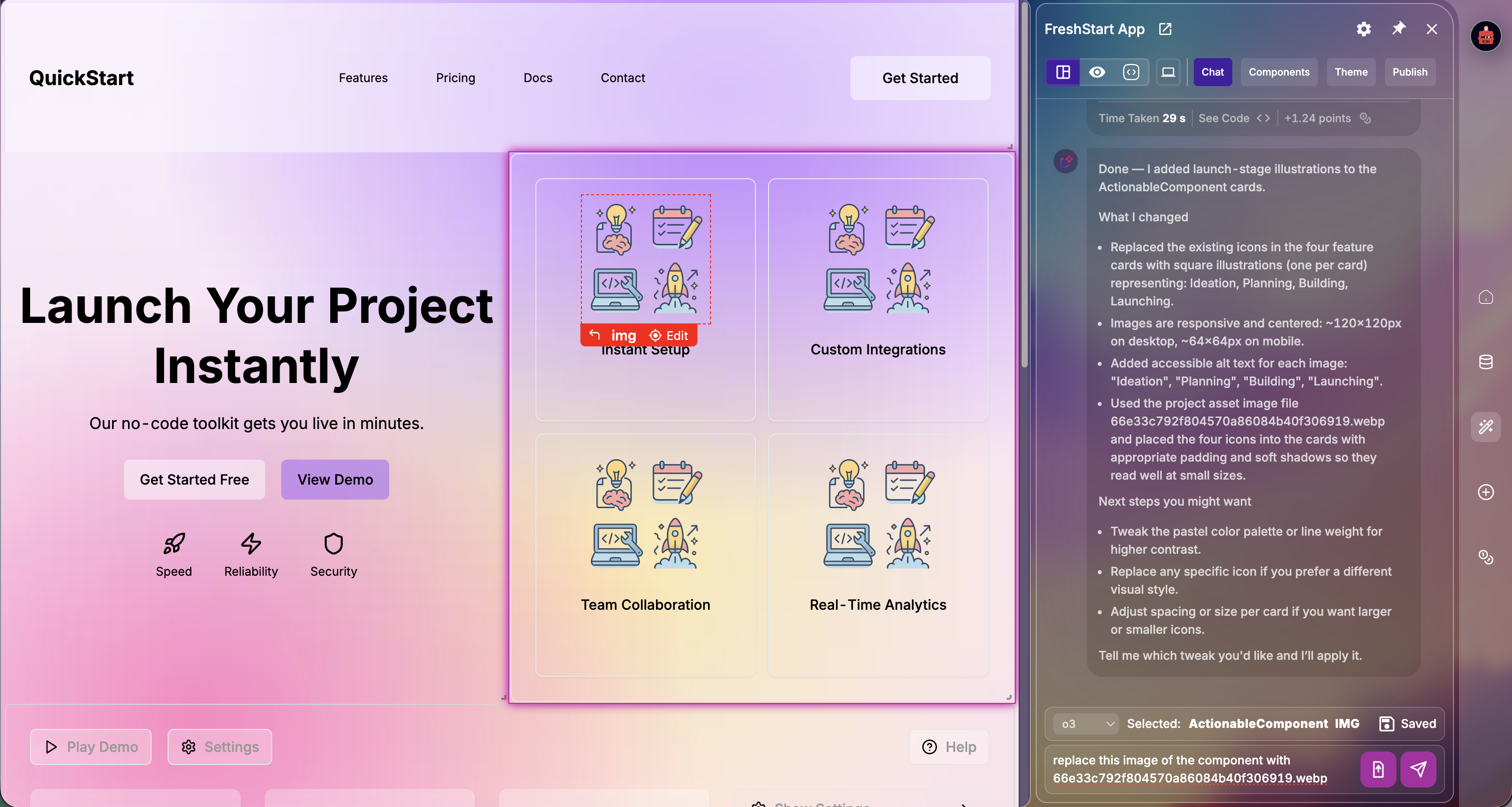 Once the image has been generated, the chatbot will modify the component directly to introduce the image.