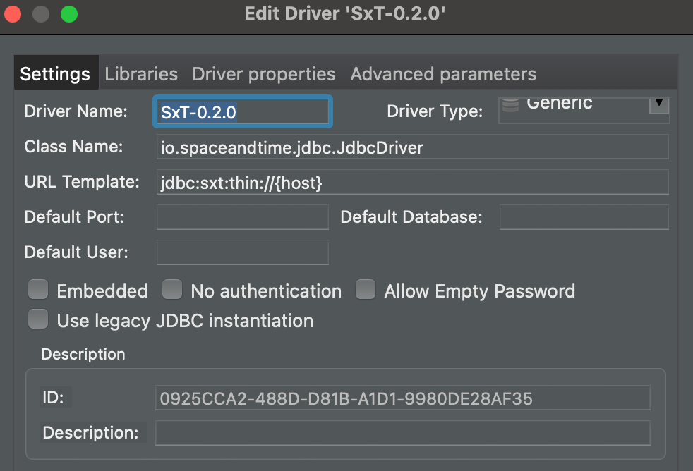 io.spaceandtime.jdbc.JdbcDriver. If the Find Class button doesn't work, try saving the connection first, then returning and hitting Find Class again. - Hit "Ok" to save the new library and settings
