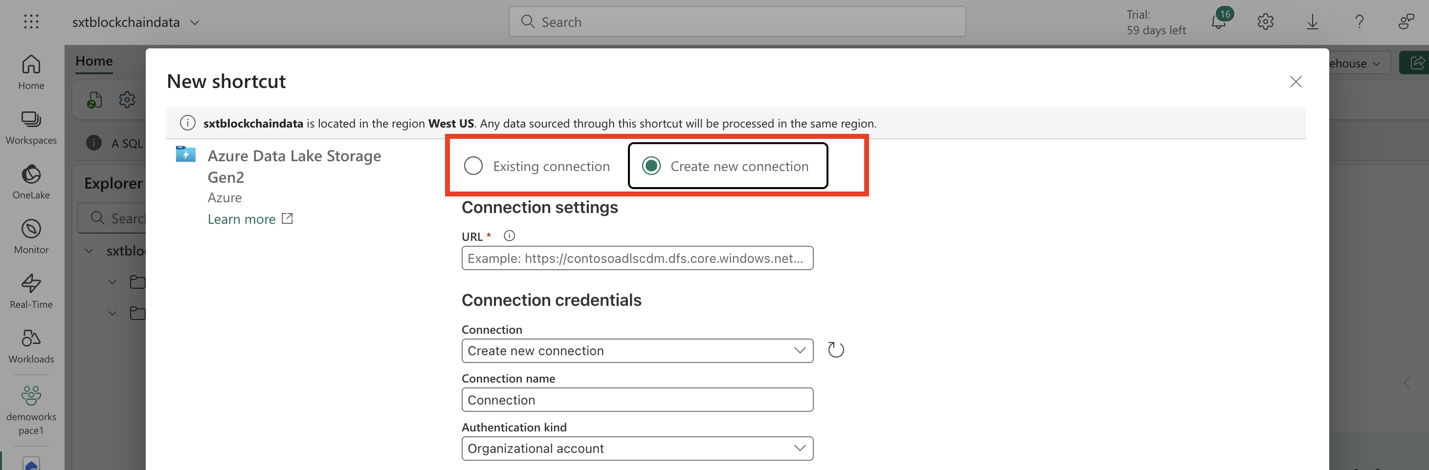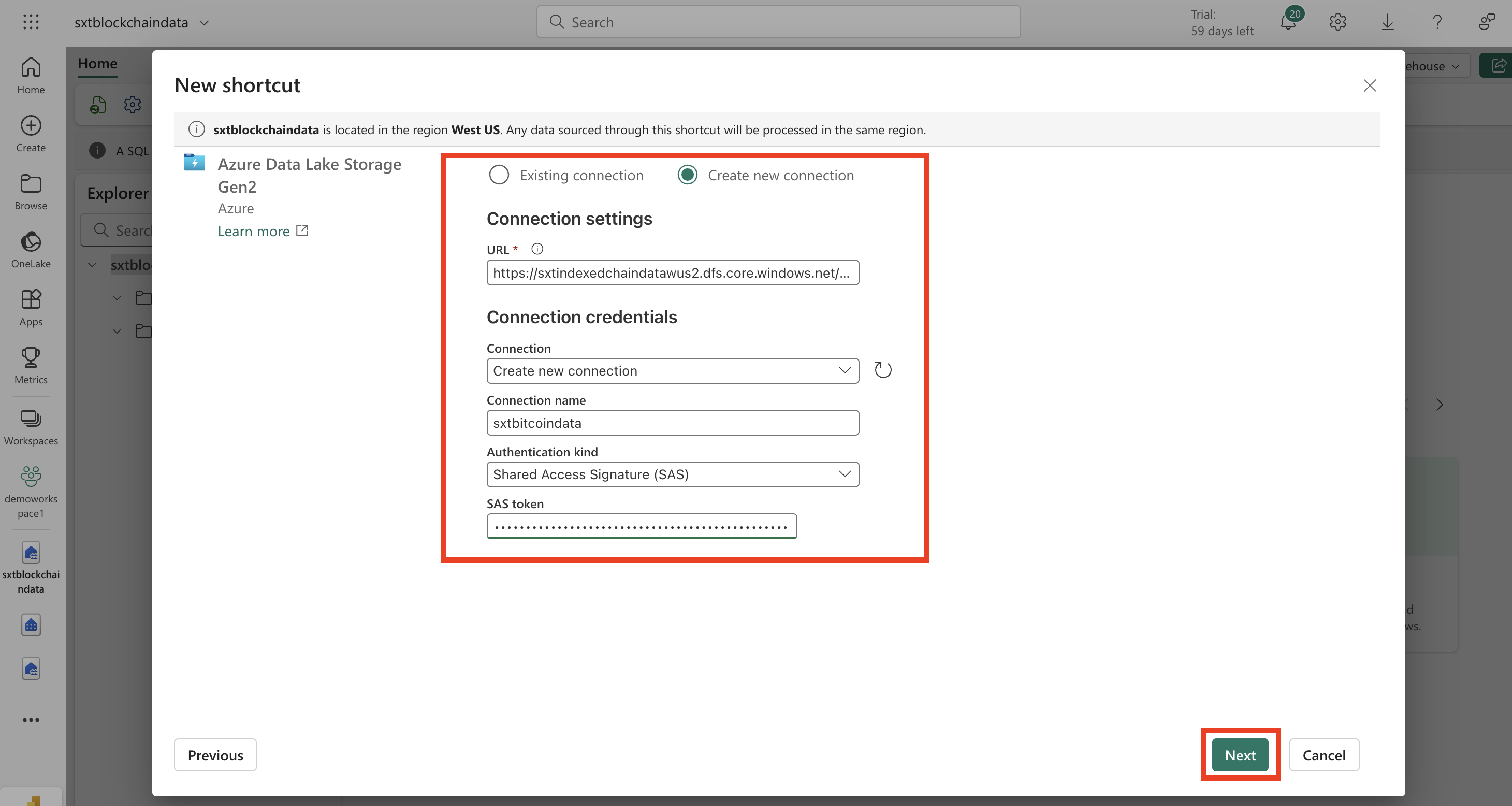 https://sxtindexedchaindatawus2.dfs.core.windows.net/bitcoin- Provide a Connection name.