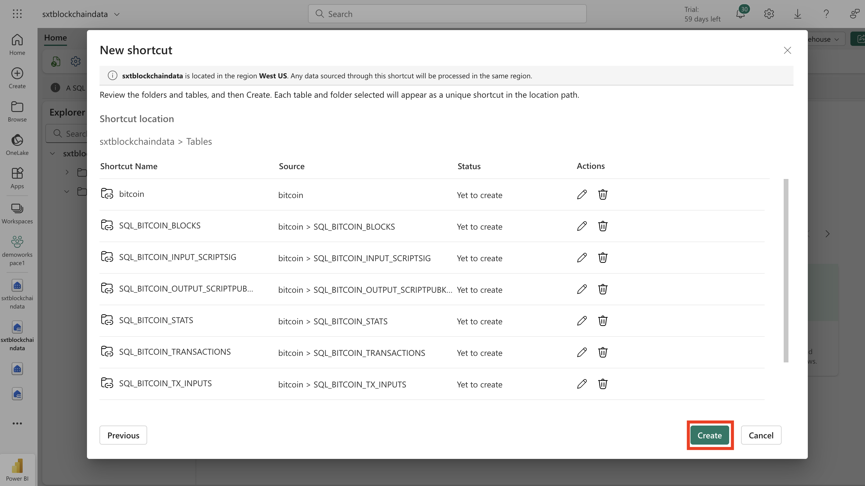 - Now, you should be able to see the desired blockchain date under the Tables folder